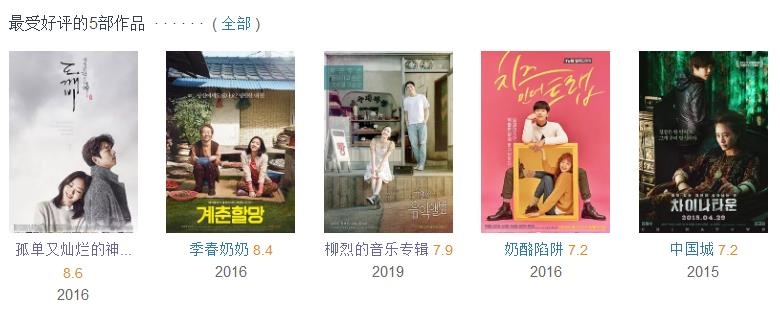她出道以来,拍摄的作品口碑评分都还不错,这是她在豆瓣上口碑最好的5部作品: