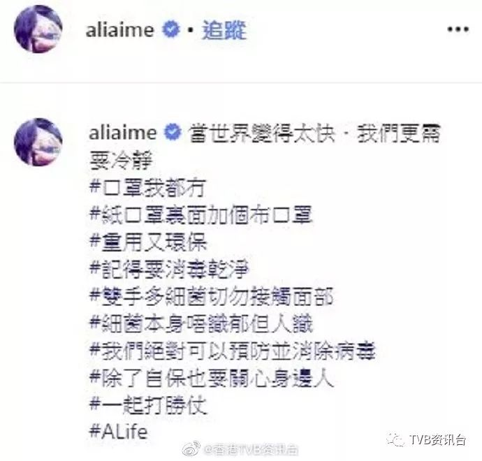 原标题:出Post教反复用口罩!TVB视后知衰照被网