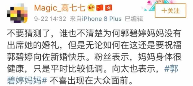不过有网友澄清,指郭妈妈“十分低调不想出镜”,所以她才会像消失了一样。