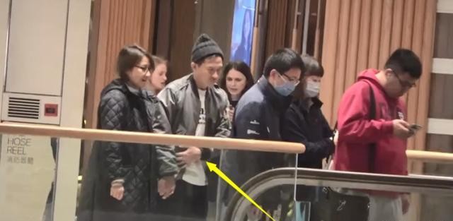 张家辉对老婆非常细心,由于当时有很多人,所以张家辉就下意识伸手过去想护着老婆。