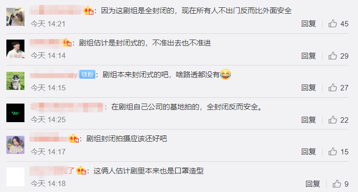 从该剧封面来看,两位主角虽然可以利用剧中的口罩造型“顺风拍戏”,但如若按照正常思维来考虑,为了保证其他工作人员的安危,《亲爱的戎装》剧组确实也应该在此刻暂时停工才对,不过,也有网友爆料,该剧组是在自己公司的基地内,并且属于全封闭式的摄影棚,简而言之,平时除了拍摄之外,大部分时间所有人都不准出门也不准外界人进来,基本上也跟自己在家里封闭是一个逻辑。