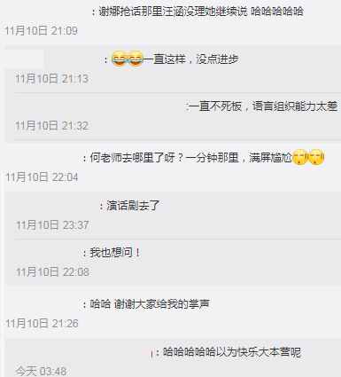 还有网友认为汪涵和谢娜之间有过节,汪涵对谢娜根本就不管,汪涵大部分时间都是自己说自己的,也没有给谢娜留面子,以至于谢娜有时候没办法插嘴,两人不在一个频率上,场面真是很尴尬。当然,也有网友认为两人主持的还不错,至少没有像之前杜海涛那样说错赞助商,那才叫真的很尴尬。