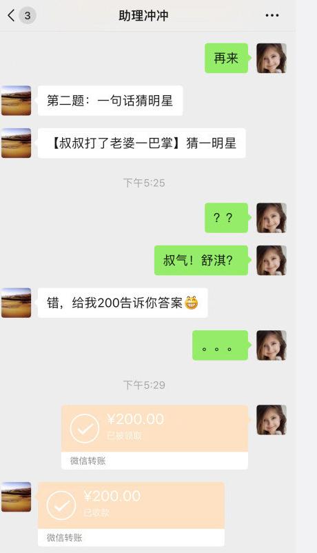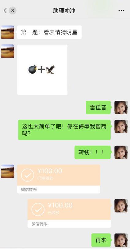 事情是这样的,一开始岳云鹏的助理和他一起玩看图猜明星的游戏嘛,然后一阿卡i是答对一题给一百。
