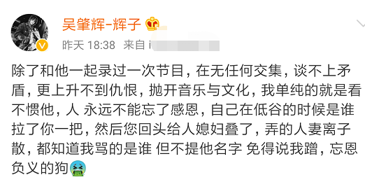 PGone这样狂妄自大的歌词,不愧是嘻哈选手了,不过别人听后就不舒服了。一位名叫辉子的嘻哈歌手就给PGone上了一课,他先是针对此事发表了言论。