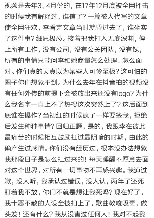 让人意外的是,PGone30日晚发文回应此事,他吐露了一肚子苦水,无非就是指责自己在“做头发”事件之后所承受的网络暴力,还为自己喊冤,语气很是硬朗。