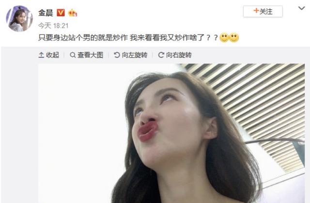 奈何每次恋情曝光,金晨都不回应同时身边的男性朋友这换的频率也挺高。于是不少人觉得这是金晨在炒作。年末的时候,金晨还愤怒的回应,反问众人:每次只要身边站个男的就是炒作,自己到底炒作啥了?