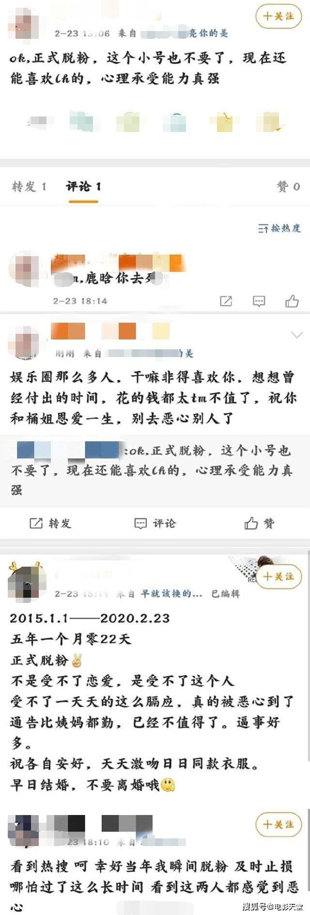 虽说两人的恋情已经全网皆知了,但这样明目张胆的秀恩爱在这三年来还是比较少的,其中缘由自然也是为了照顾粉丝。只不过这次秀恩爱依旧没能逃过脱粉的命运啊。有粉丝在微博发文称:“正式脱粉,这个小号也不要了,现在还喜欢lh的,心理承受能力真强”,此外该网友还表示自己曾经付出的时间和花的钱都打水漂了,鹿晗并不值得了。
