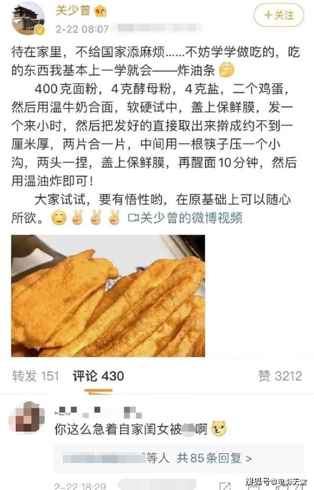 此外,鹿晗在微博上晒出的油条照片也可以说明一二,因为在鹿晗晒出这张照片没多久,关晓彤的爸爸就晒出了炸油条的详细教程,想来鹿晗照片中的油条也是出自关爸爸之手的。这么一对比,就不难发现鹿晗和关晓彤是不是生活在一起了。