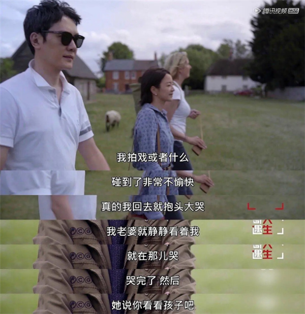 上《奇遇人生》,三句话有两句话都在说媳妇和儿子,他说他有时候遇到什么不愉快,就会回去抱头大哭,赵丽颖就在旁边陪着他,静静地看着他哭,哭完了说,“去看看孩子吧”。