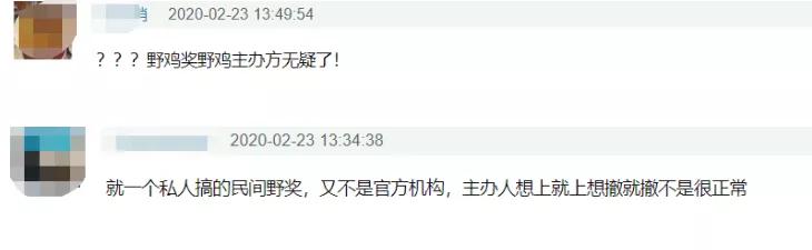 不过,也网友称这就是私人搞的民间奖项,又不是官方机构,主办人想上就上想撤就撤不是很正常。