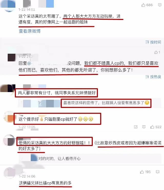 这一做法获得了剧粉好评,很多网友表示,任嘉伦、谭松韵这两位主演的采访真的很有分寸,俩人态度大大方方很舒服,相处起来就像兄妹一样,非常喜欢这样的宣传方式,比各种cp人设要好多了!