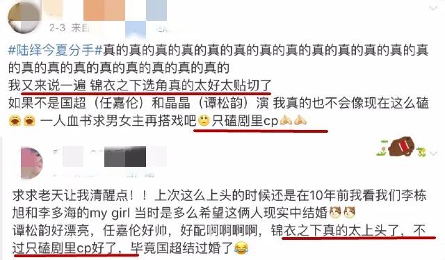 也是因为在这样的坦荡加分下,男女主非常吸粉,很多剧粉表示虽然自己真的很喜欢这对剧中cp,但是理智告诉自己只会嗑剧里cp不站真人,就算剧播完了,还是两位主演以后的事业粉。《锦衣》一直到收官,剧粉的相处都非常和谐,几乎没有争执,都忙于宣传新剧。