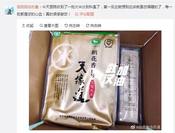周杰宣布捐大米之后,有医务工作者已经收到了他的心意。