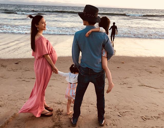 照片中,李靓蕾穿着白色上衣,搭配长裙,披散着如瀑的浓密长发,背影看起来仙气十足,相当有淑女范儿!妈妈手中牵着的正是家里最小的儿子王嘉耀。