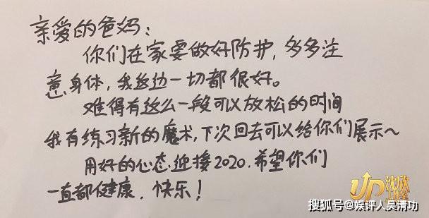 王一博告白父母:“难得有这么一段可以放松的时间,我有练习新的魔术,下次回去可以给你们展示。用好的心态迎接2020,希望你们一直都健康、快乐!”王一博此时已经离开了河南老家,准备复工了。