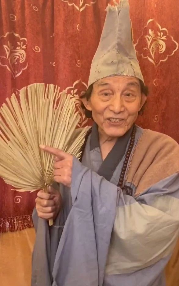 视频中,他满足网友请求重扮济公造型,用扇子“在线电影院扇走”疫情,还声音哽咽称“白衣天使才是当代活济公”。