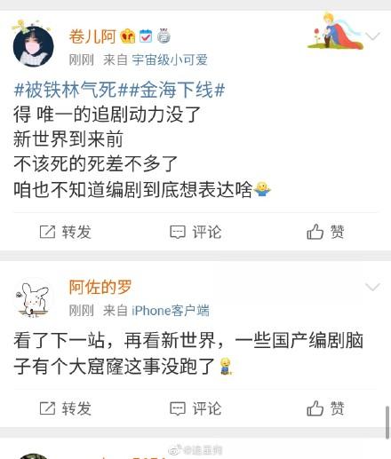 不仅注水严重影响故事的精彩,编剧对剧中主要人物的命运设计,也被观众疯狂吐槽,让人甚至气愤到骂人,口诛笔伐发飙都无法宣泄内心的不满。从剧情到人设的各种细节安排,都无法支撑这部剧的品质,自然要被观众嫌弃。