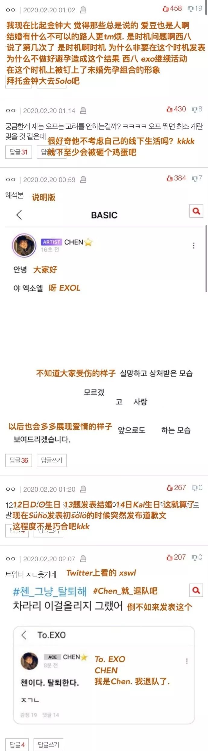 韩国网友现在也开始刷起了让chen退队的话题,被骂的挺惨了