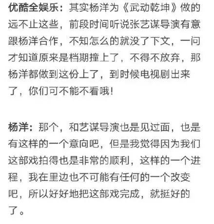这个事不是空穴来风,优酷还曾就此采访过杨洋呢!