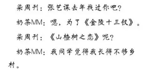 加上《金陵十三钗》,后来竟然有通稿说奶茶拒绝过张艺谋三次。