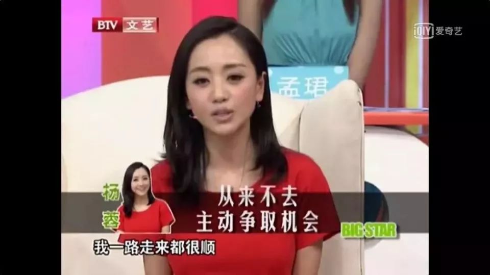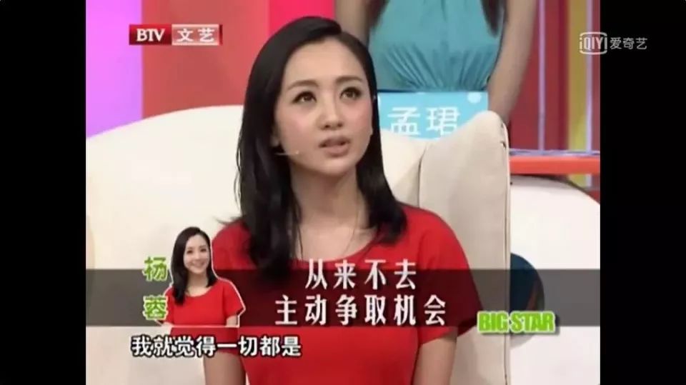 在一个节目中,杨蓉谈自己的演艺生涯,她说自己一路走来都很顺利,而且自己从来不主动争取机会,但机会总会自动送上门。