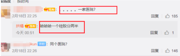 两人的对比照放在一起是不是更直观一些,好像姐妹花一样,相似度超高,也有网友留言称两人是同一家医院整容,言外之意是“制造”出了重样?