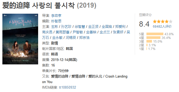 再加上有玄彬和孙艺珍的神仙组合搭配,这部剧肯定会火,但没想到可以这么火炎焱,连一向严苛的豆瓣剧评都保持在8.4分