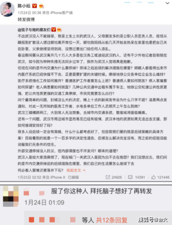 陈小纭转发武汉信息,被网友直接喷要她闭嘴。