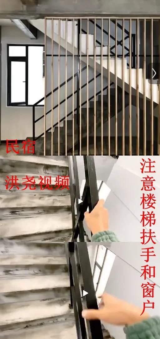 而且还能从洪尧后来分享的视频中窥可以探到一些细节,能看出居住的民宿酒店的主题是工业风,黑色的楼梯扶手和黑色边框的窗。