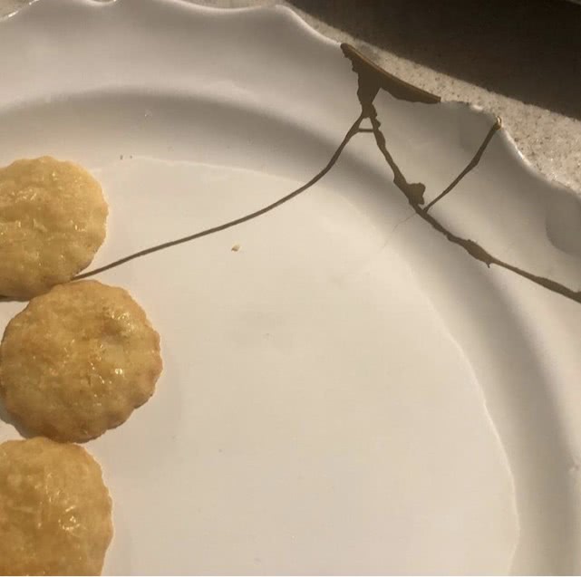 据悉,金继是日本传统手工艺,意指在破损的陶器上涂上天然金漆修补。