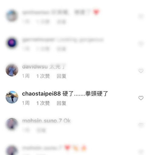 然而在下面的评论中我们看到了赵元同,他评论道:“硬了……拳头硬了”中间加一个省略号,让人几乎可以断定他在“开车”,直接评论用这样的词汇实在是不堪入目。