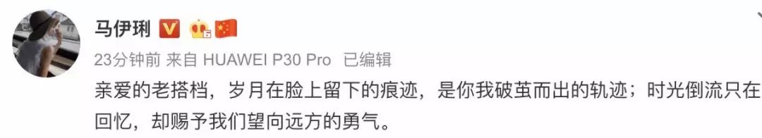 可见,文中马伊琍欣然接受了岁月留下的痕迹,但也希望不要就此停留在美好的回忆里,而应拿出勇气不断前行。
