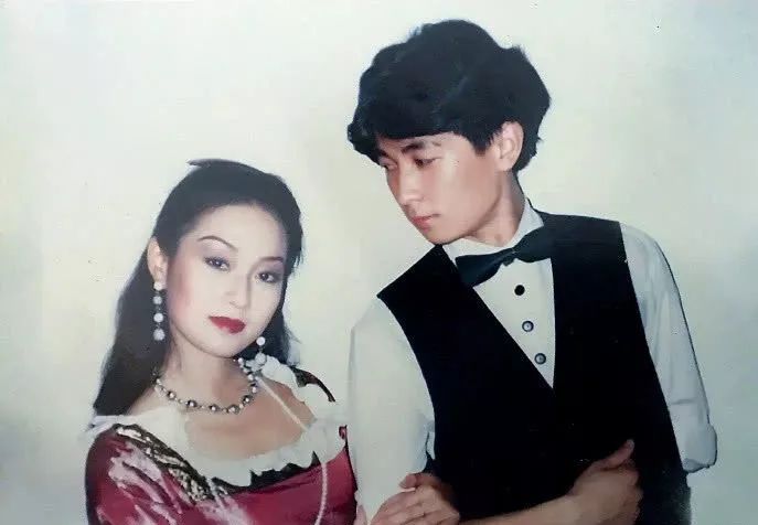 从晒出的第一张珍藏照看来,这应该是两人学校排练时的造型照。