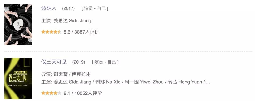 但他还是因为一些众所周知的原因离开了,离开之后,姜思达自己录了两档访谈类的短视频节目,一个是之前的《透明人》,一个是前段时间的《仅三天可见》,豆瓣评分成绩都非常不错。