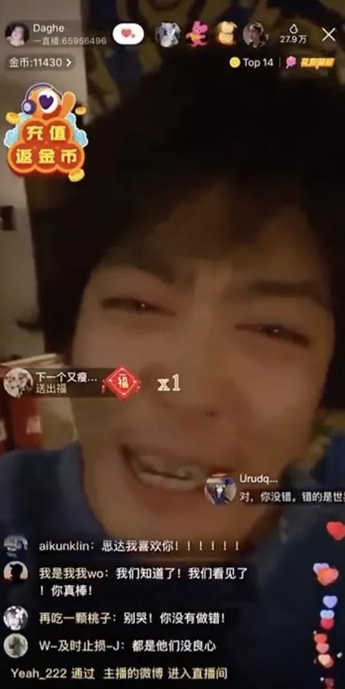 一通发泄操作之后,姜思达似乎意识到了不对劲儿,擦干眼泪努力微笑,强忍着不让眼泪流出来结束了直播。