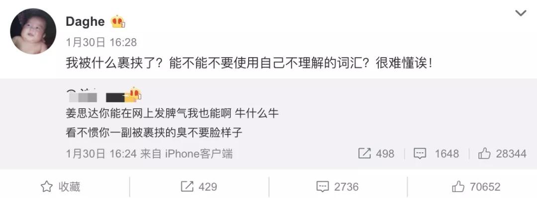 当时大家都觉得这事儿还挺有趣,但也有那么几个看不惯的,其中就有姜思达,转发微博并且评论说:早上起床,吐得很凶,什么严肃媒体啊,咱不要那玩意。
