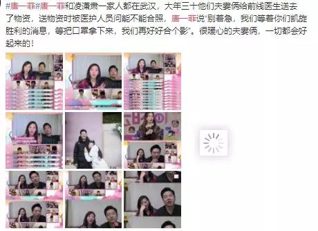 先是因为在与王一博、沈梦辰、钱枫、大张伟等艺人录制的线上节目“天天向上云时间”中透露一家人身在武汉娘家,且家里有3位亲戚不幸感染的事情引起网友的热议;之后又因为被凌潇肃爆料大年三十为武汉某医院的医护人员送牛奶等物资应急,收到网友的密集点赞;然后又因为和凌潇肃一起给支【爱尚影视】援武汉的医护人员发元宵节红包,收到红包的医护人员在网络上发状态道谢再次上了热搜……