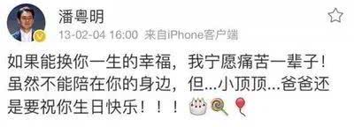 尽管夫妻间矛盾突出,不过,潘粤明还是放心不下儿子,依旧在2013年2月5日,祝福儿子生日: