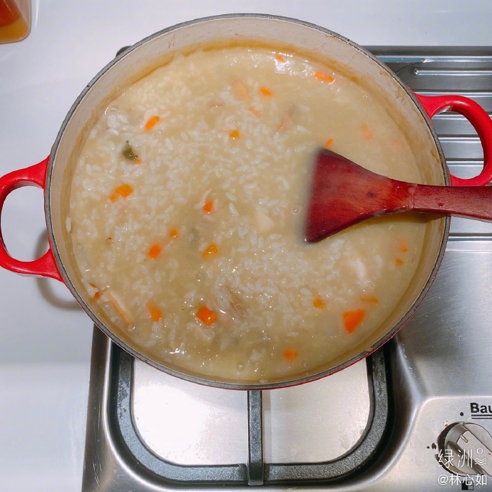 从照片上不难看出,粥确实是现熬的。林心如也是特别迫不及待,锅还在炉子上,就忍不住要留下这一瞬间。