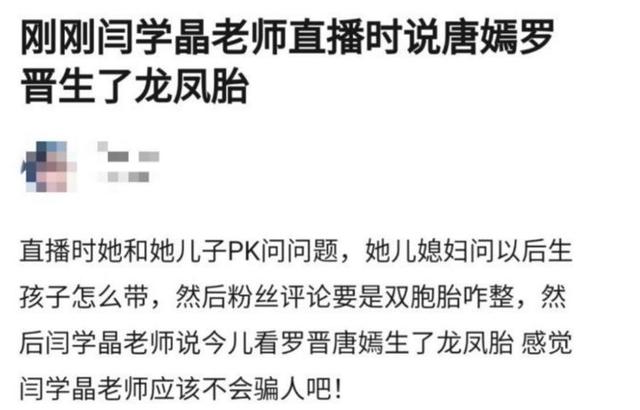 谁知道闫学晶看了之后,就把唐嫣生了龙凤胎的事情说了出来,虽然是随口一说,但也引来不少争议。