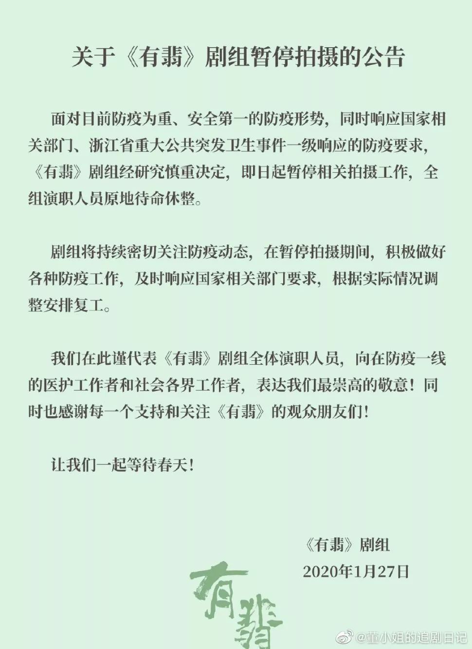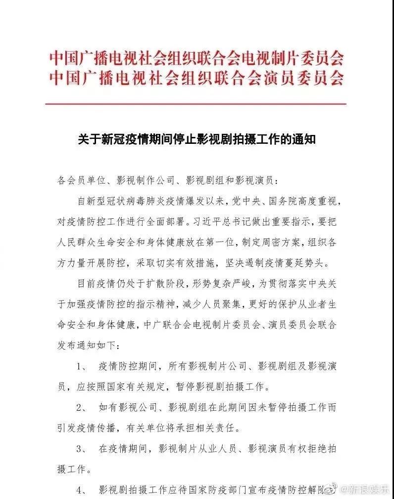 最近一则影视剧组停工令刷爆了眼球,不少剧组都放了长假,电影院不能正常营业,综艺娱乐也被限制。
