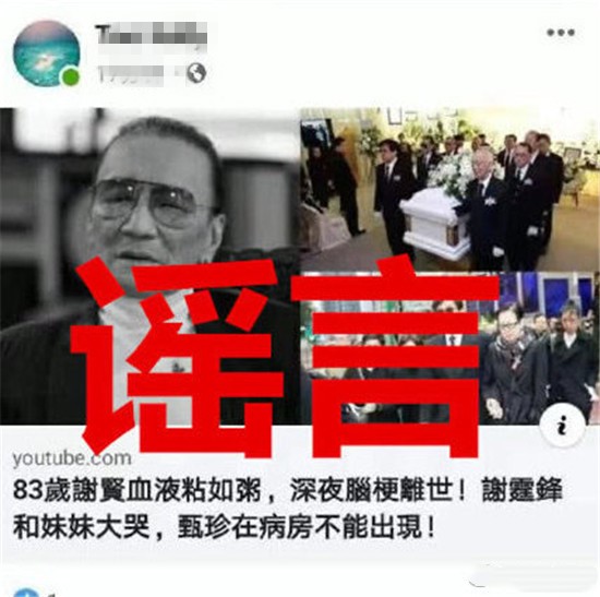 跟谢家多大的仇?谢霆锋儿子刚被人造谣,谢贤又被造谣过世?