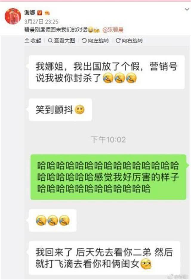 她晒出了张碧晨与自己的聊天对话,开玩笑的语气之间,就对事件做出了最好的澄清。