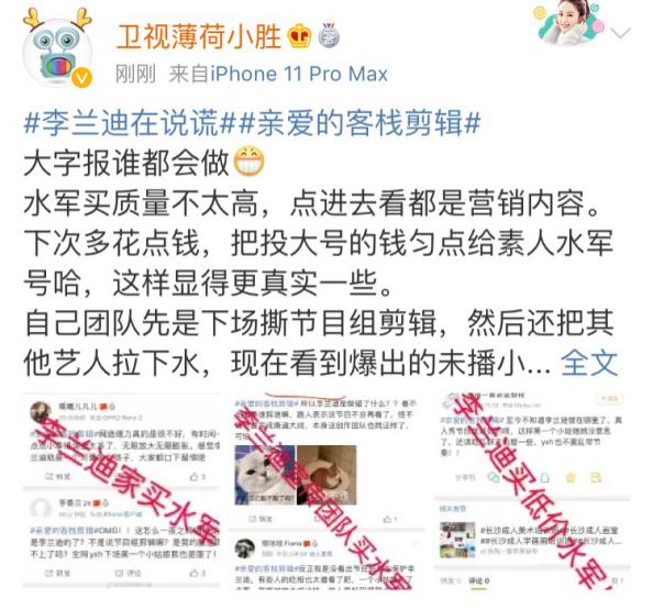 如今湖南卫视的工作人员还在撕李兰迪,看来这次湖南卫视可能真的被冤枉了,以前剪辑也经常被指黑谁黑谁,也没见过这次这样的阵仗!
