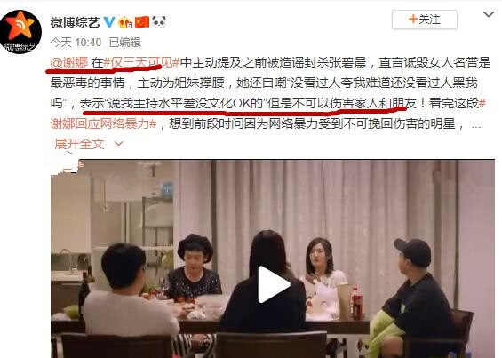 至于网上说自己没文化,主持水平差这都是ok的,无所谓的。虽然有些半开玩笑的性质,但是起码从侧面反应出,谢娜多多少少也是认可了的。