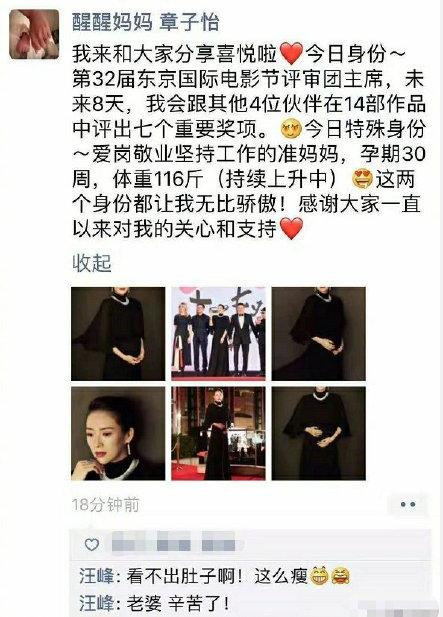 最近,章子怡亮相东京电影节当评委会主席,怀孕三十周的她大腹便便,怀二胎事实瞒不住了,于是大方承认公布,随后汪峰还夸老婆很瘦,又心疼章子怡辛苦了。就这样,这对一直不被看好的话题夫妻,再次轻松登上热搜。