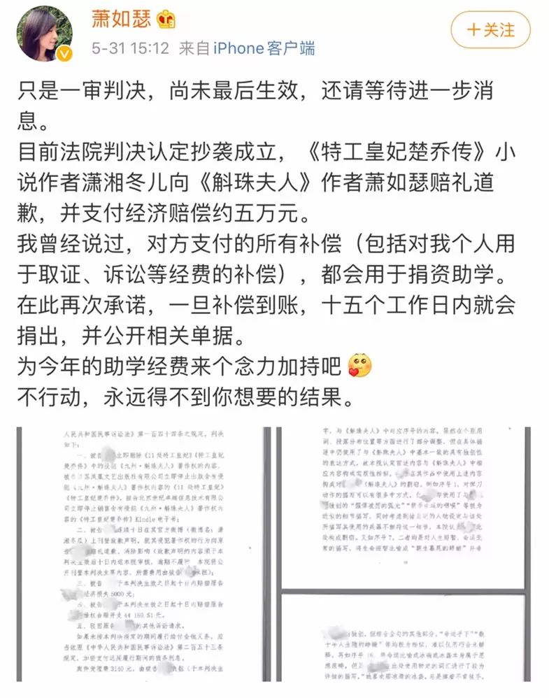 法院同样判定抄袭成立,被告需向原告赔礼道歉、支付经济赔偿约5万元。