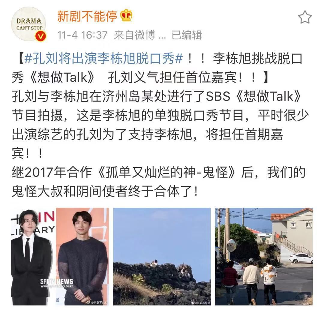 随后韩媒报道称录制的节目是李栋旭单独脱口秀《想做Talk》,孔刘将作为首期嘉宾义气出演
