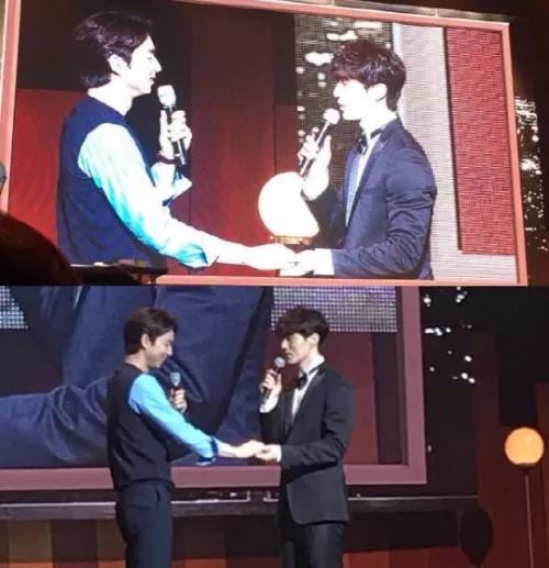 之前在孔刘以嘉宾身份出席李栋旭的粉丝见面会时,两个人也在现场各种开玩笑打闹