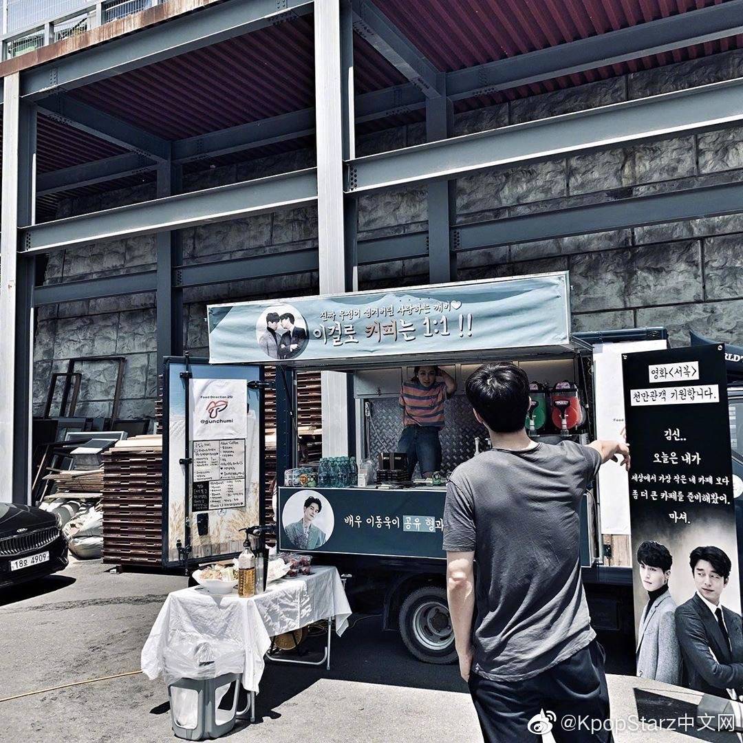 而在之后李栋旭也以同样的方式应援了孔刘,写到:“今天我准备的,比世界上最小的你的咖啡车稍微大点,真正因为友情而相爱的鬼怪,这次咖啡是1:1”
